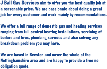 J Ball Gas Services aim to offer you the best quality job at a reasonable price. We are passionate about doing a great job for every customer and work mainly by recommendations.